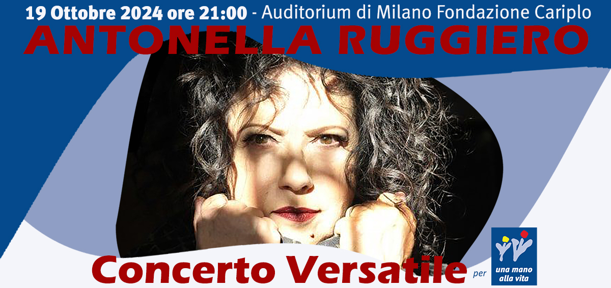 - Biglietti: Disponibili online su https://www.vivaticket.com/it/ticket/antonella-ruggiero-concerto-versatile/243779 oppure contattando direttamente Una Mano alla Vita Ets (umav@unamanoallavita.it, tel. 02.33101271) o rivolgendosi all’Auditorium di Milano (biglietteria@sinfonicadimilano.org, tel. 02 83389.401/402 da martedì a domenica dalle 10:00 alle 19:00). Riduzioni disponibili per abbonati e soci Orchestra Sinfonica Milano, under 25, gruppi (minimo 10 pax), persone disabili secondo il Protocollo di intesa siglato dalle Associazioni Teatri Lombardi e Regione Lombardia.