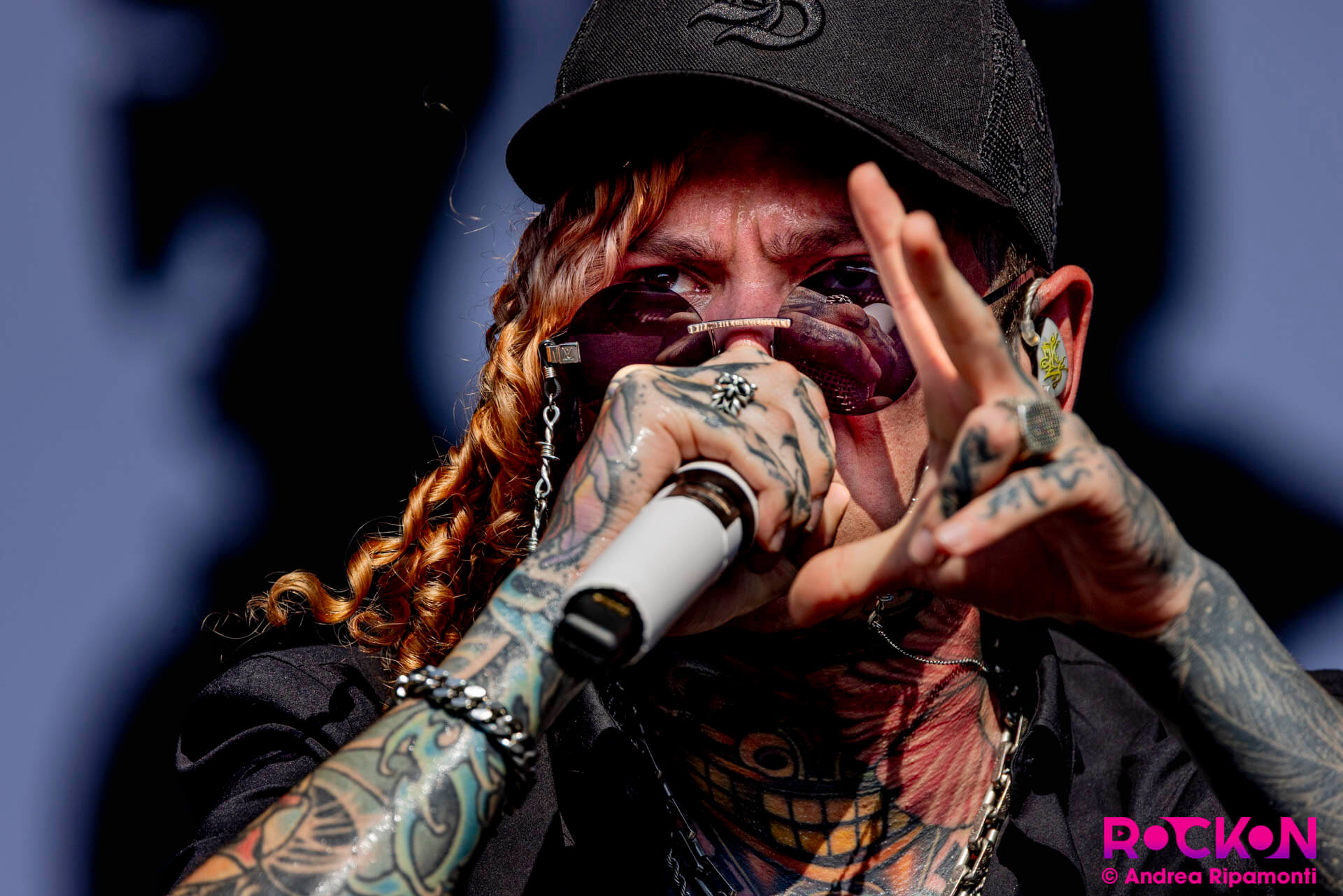 La terza giornata (sabato 21 giugno) è stata all’insegna delle sonorità pesanti e moderne, trasformando Dessel in una fornace di riff infuocati. Ad aprire le danze ci hanno pensato band come Skindred, che con il loro mix unico di metal e reggae hanno fatto letteralmente saltare tutti: il frontman Benji Webbe ha innescato il rituale del “Newport Helicopter”, con migliaia di fan a roteare magliette in aria durante la hit “Warning”, portando un’ondata di divertimento e follia collettiva. Sull’altro stage, i tedeschi Oomph! ed Eisbrecher hanno imposto ritmi incalzanti di industrial e NDH, preparando il terreno a un assalto di pesantezza.