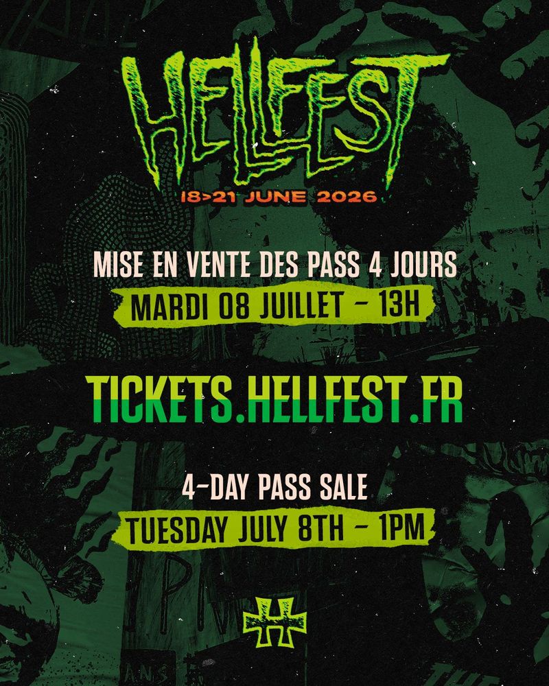 Annunciata anche la data di messa in vendita dei 4-days-pass: i biglietti saranno disponibili a partire da martedì 8 luglio alle ore 13:00, esclusivamente tramite il sito ufficiale tickets.hellfest.fr