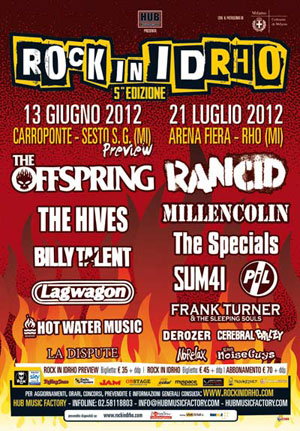 Ritorna anche quest’anno l’immancabile appuntamento estivo con il festival rock per eccellenza della città di Milano. Rock In IdRho, giunto alla sua quinta edizione, nel 2012 raddoppia offrendo una due giorni di pura adrenalina!! “Ogni anno individuiamo l’headliner e su di esso modelliamo quello che poi sarà il cast ufficiale del Festival.” Queste le parole degli organizzatori che dopo un anno di duro lavoro hanno messo insieme un cast all’insegna del miglior punk/rock che ci sia in circolazione.