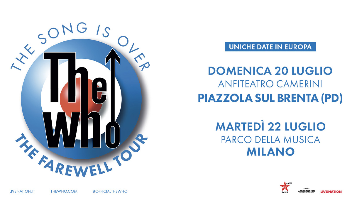 I The Who annunciano il loro tour d’addio, The song is over, che partirà proprio dal nostro paese con due tappe uniche – le sole annunciate in Europa: il 20 luglio all’Anfiteatro Camerini di Piazzola sul Brenta (Padova) e il il 22 luglio al Parco della Musica di Milano.