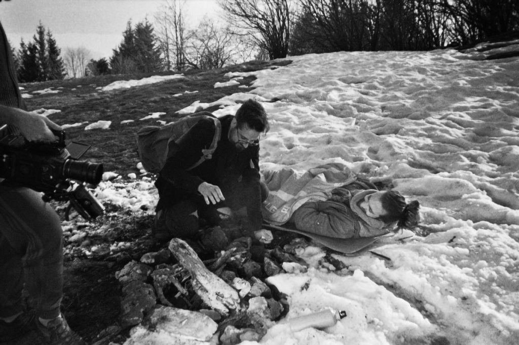 L’approccio di Giacomo è stato – sia per necessità circostanziale, sia per gusto – semplice, diretto, senza fronzoli. Una sorta di fede nel potere evocativo di cogliere l’immagine giusta, con la luce giusta, nel luogo giusto, seguendo l’azione corretta, raccordandoli, infine, attraverso il montaggio. Abbiamo girato in pochissimi, oltre a Giacomo, che si curava della regia e della macchina da presa, ci siamo avvalsi dell’immenso aiuto di tre assistenti tuttofare: Luca Alberti, Matteo Terracciano e Simone Pezzolati (che ha curato anche il backstage). Che si trattasse di trasportare attrezzatura in cima a una montagna o manovrare riflettenti, il loro supporto è stato indispensabile per concludere con successo le due lunghe giornate di riprese. Teo e Patrizio (il protagonista) non si sono mai fatti problemi ad entrare in situazioni estremamente scomode, costruendo una cooperazione che ha rafforzato quella dei loro personaggi su schermo. È stato piuttosto faticoso, ma l’umorismo che regnava tra una ripresa e l’altra ci ha alleggerito non poco il lavoro. Considerata la scelta delle location poi, il Covid è letteralmente sparito dalle nostre preoccupazioni, eravamo totalmente focalizzati sulle riprese. Di questi tempi, girare in ambienti naturali aperti e distanti dalle zone urbane è ancora più liberatorio.