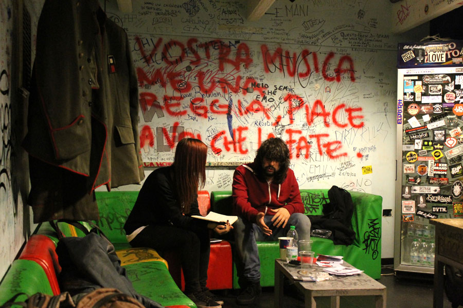 In occasione della prima data del Tour “Il Passato Promette Bene”, tenutasi sabato 16 novembre al New Age Club Di Roncade (TV), ho avuto il piacere di incontrare Federico Dragogna, penna e chitarra dei Ministri, una delle poche band italiane rimaste tra quelle in grado di produrre pezzi degni di essere catalogati come rock. Un’intervista di circa mezzora in cui ho potuto presentare quattro domande scelte tra quelle arrivate in redazione dai loro fan e in cui ho potuto approfondire alcune notizie e alcuni aspetti che riguardano il trio di Milano composto da Divi, Fede e Michele, accompagnati nei live da Effe Punto, come la pausa che seguirà il tour, la recente uscita del video di “Una Palude”, la pubblicazione del vinile di “Per Un Passato Migliore”, il rapporto con i fan e con la SIAE e il legame che intercorre tra loro. Una grandissima soddisfazione personale in quanto appassionata della musica dei Ministri e dei loro testi dai tempi de “I Soldi Sono Finiti” e soprattutto un’occasione preziosa per confrontarmi con Federico Dragogna su temi interessanti e attuali come il degrado del giornalismo e della stampa nel nostro Paese, analizzando un passaggio de “La Pista Anarchica”, il ruolo pericoloso dei Social Network, tema a quanto pare molto caro a Fede, e quattro domande a brucia pelo su un’ipotetica colonna sonora per un film, su un altrettanto ipotetica partecipazione a Sanremo, sull’uso della lingua inglese e, dulcis in fundo, sul concetto di amore. Inutile dilungarsi sulla descrizione del concerto dei Ministri al New Age Club, come sempre si è trattato di un’esperienza di piena comunione con gli altri partecipanti del pubblico e come sempre hanno dato loro stessi senza risparmiare su nulla, complice una scaletta totalmente nuova (che troverete alla fine dell’articolo). Di seguito il report dell’intervista rilasciata subito dopo il sound check e le fotografie della prima data del Tour “Il Passato Promette Bene”, entrambe parlano da sé!