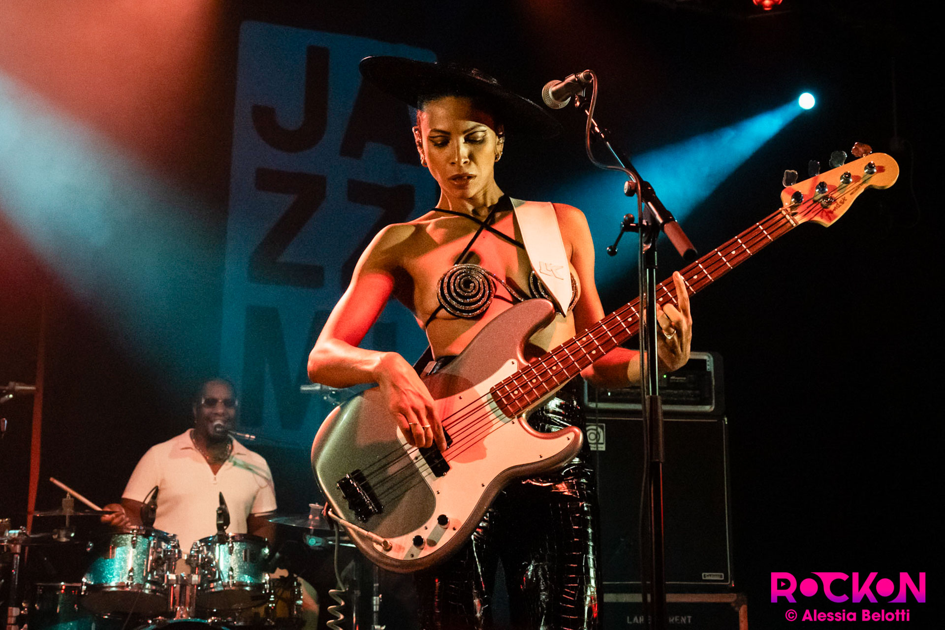 Lo confesso subito: per lei, per i suoi groove e per la sua voce ho un debole da quando mi hanno fatto ascoltare Mango con KAMAUU. Ho pensato, ecco qua: la mia prossima artista emergente preferita. Di cose gliene sono successe poi, tra collaborazioni, EP, un cambio di nome d’arte e un lungo tour a supporto del suo ultimo lavoro Lotus Glow. Non potevo perdermi l’occasione, rara, di vedere dal vivo Adeline Michèle Pétricien, o Adi Oasis: bassista, cantante. produttrice, ora ospite del festival JazzMi alla Santeria Toscana di Milano.