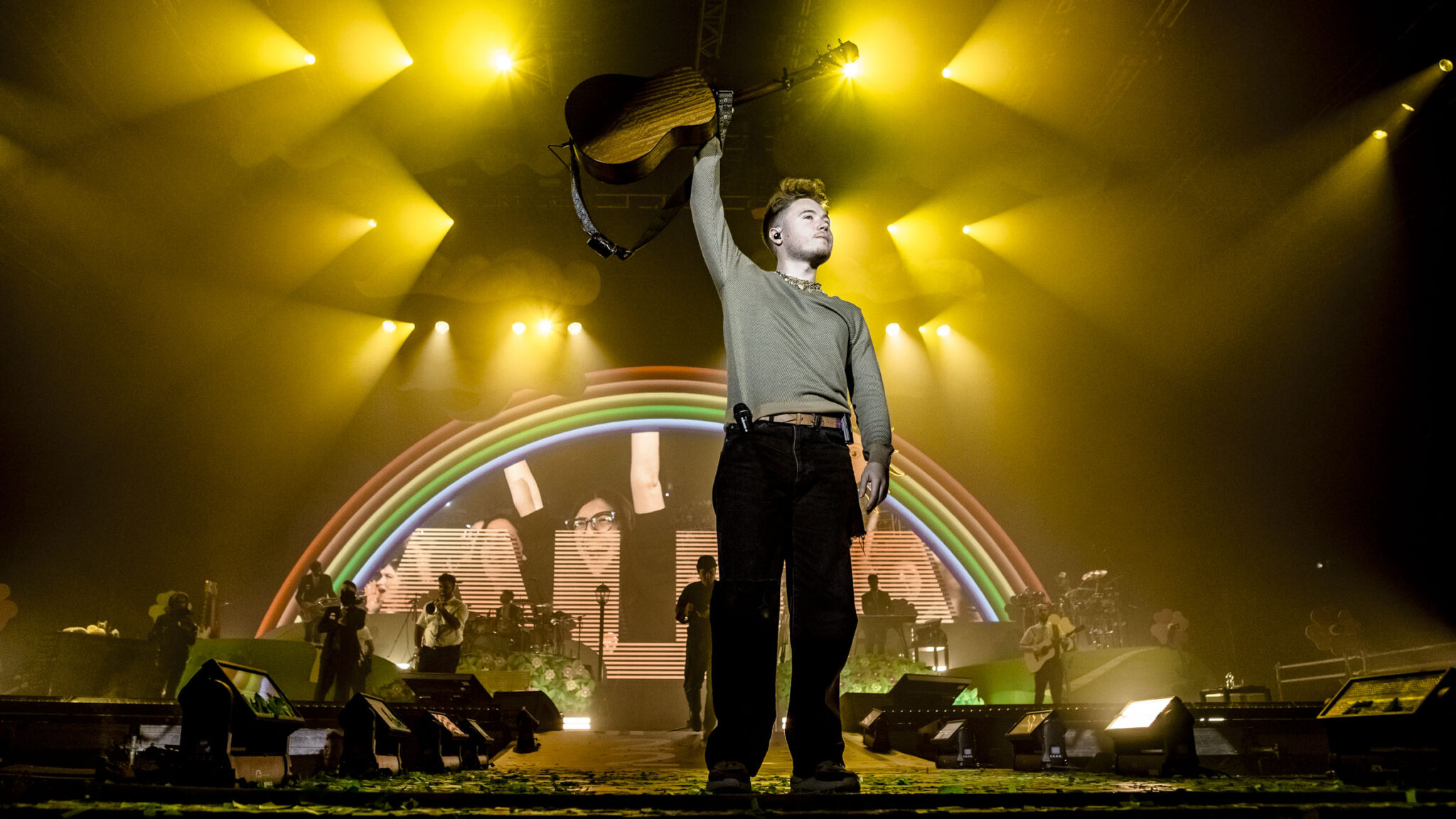 Elemento principale di un allestimento in formato «XXL» sul palco, un magnifico arcobaleno ha colorato il PalaGeorge di Montichiari in occasione del primo concerto in provincia di Alfa al secolo Andrea De Filippi. Cristallina la sua voce, capace di regalare infinite sfumature e coinvolgere i 5mila spettatori, scaldati a dovere dall’opening affidato alla pugliese Enè. Un concerto di due ore non-stop che ha suscitato applausi in serie.