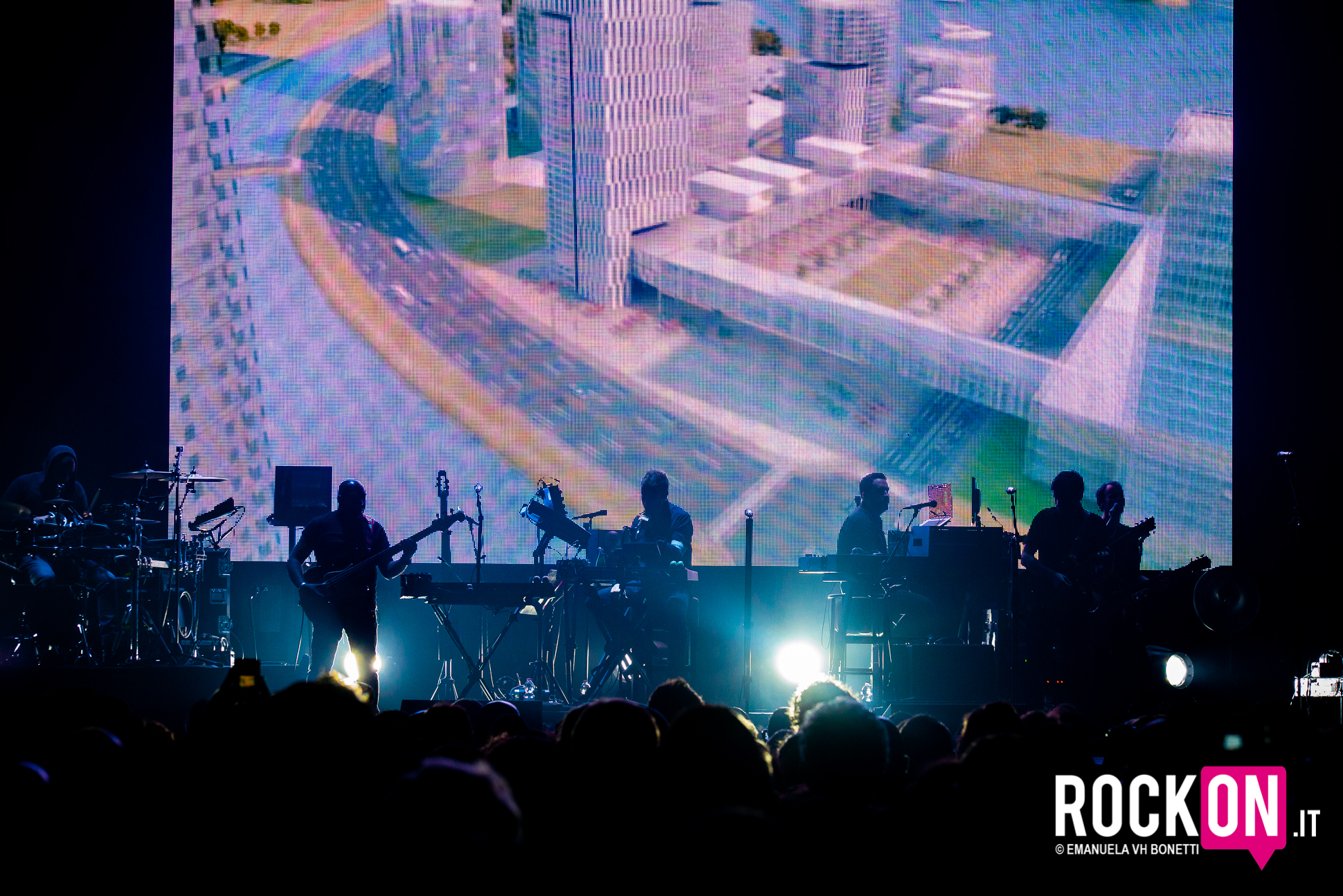 Un flusso di coscienza che prosegue durante tutto il concerto, prima lentamente e poi con la potenza di Man Next Door, perfetta con il suo canto soul, il sound potente e i testi paranoici.