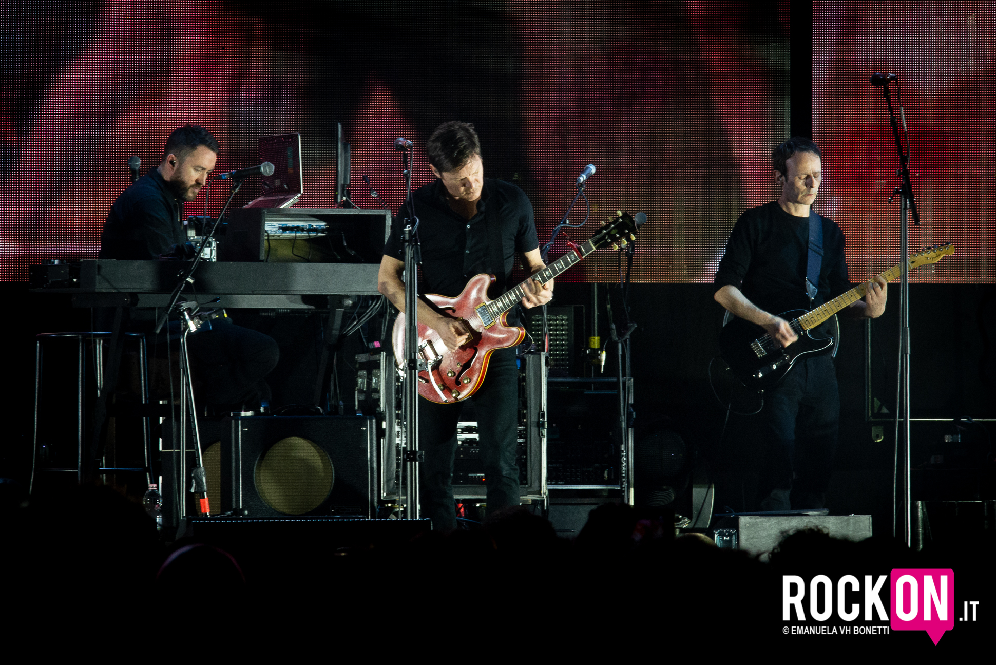 È un’esperienza fuori dal comune, perché da un lato senti tutta la tristezza, lo strazio, dall’altro quelle luci verdi sul palco irradiano una calma irreale. Tutte quelle luci a intermittenza, poi, sembrano immergerti in una puntata di Fringe. Finito il brano si fermano per pochissimi minuti, oserei dire istanti, e subito il pubblico incita una ripresa che non si fa attendere.