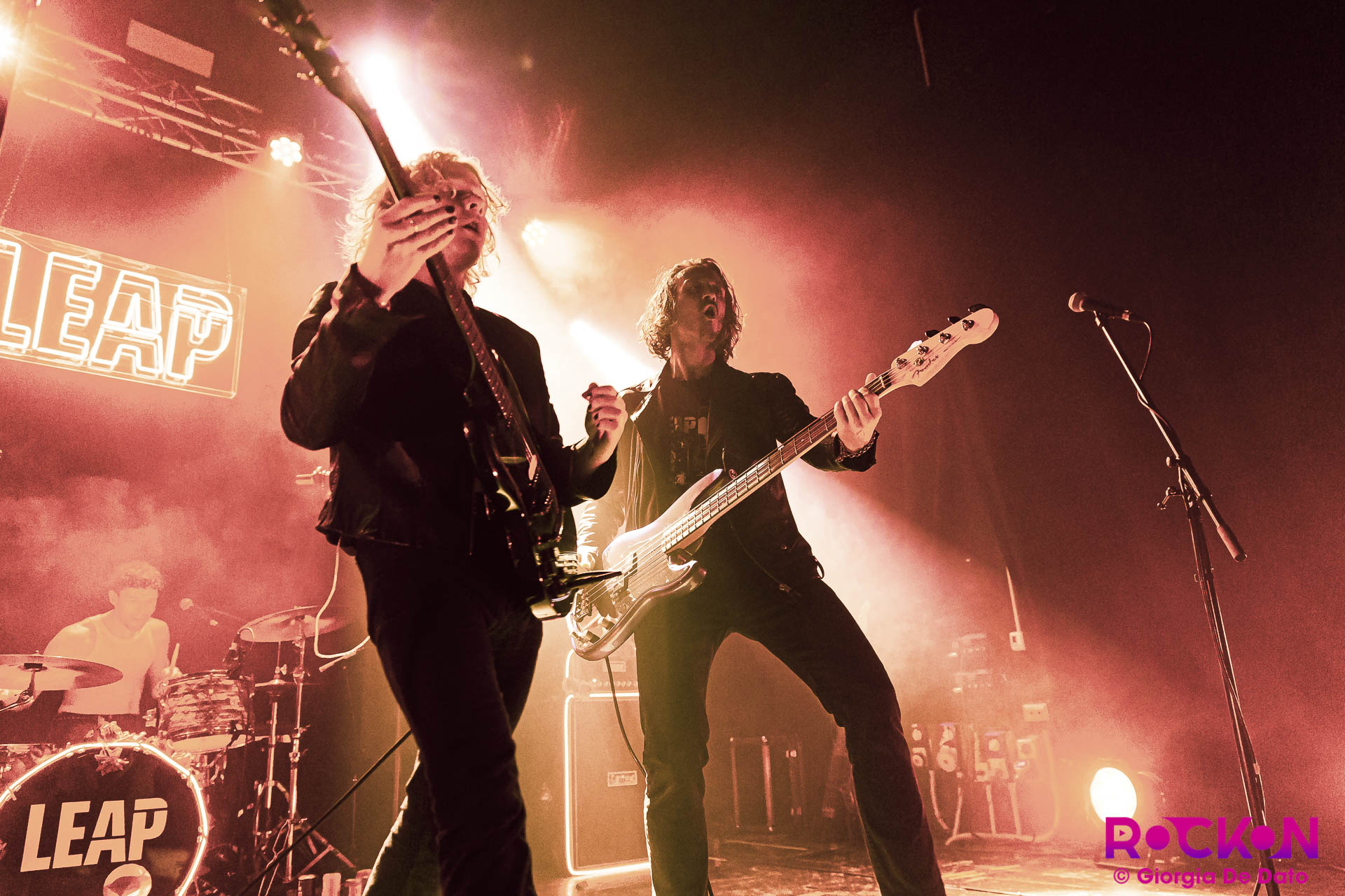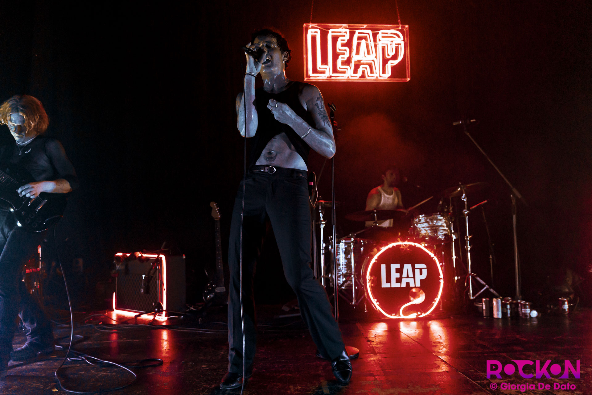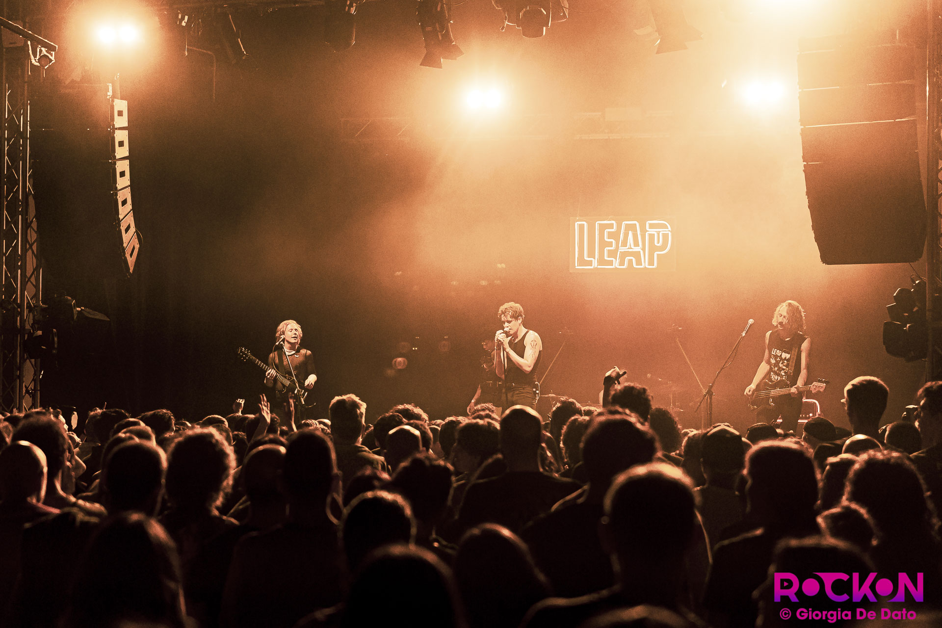 Passa poco tempo tra la loro uscita, dopo aver dato una mano a smontare gli strumenti, e l’ingresso in scena dei Leap. Una entrata da antidivi, senza intro registrate o corsette sul palco: arrivano, salutano e si mettono a fare un veloce soundcheck con i tecnici. Ma l’attitude da rocker è conclamata e non passa inosservata, già nelle movenze di Scott che – con chiodo e occhiali scuri – non ha neanche iniziato a cantare. Basteranno pochi minuti di attesa, però, perché questo succeda.