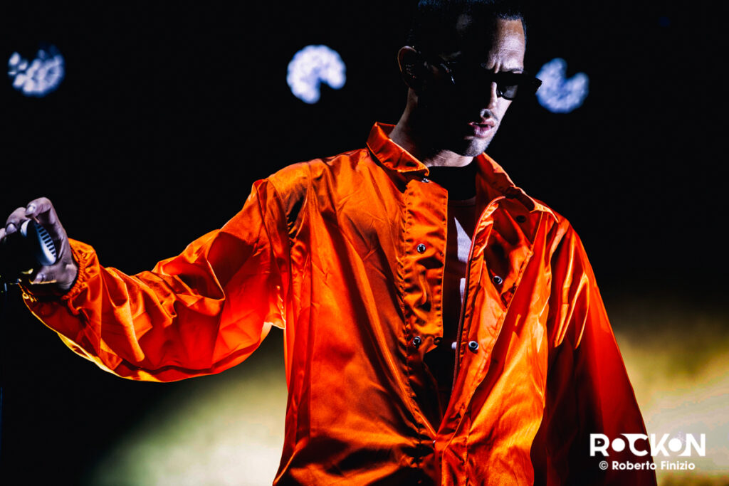 Perché Mahmood, nonostante due soli album all’attivo (Gioventù bruciata del 2019 e Ghettolimpo del 2021) è un cantautore maturo, come i suoi testi, con uno stile che ne fa decisamente un unicum. Eppure sul palco è un semplice quasi trentenne, farà gli anni proprio tra pochi giorni, che si rivolge a chi ha pagato un biglietto per vederlo come se stesse parlando con gli amici in qualche locale.