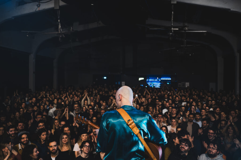 Ti libera nella possibilità di essere troppo, frivola o frivolo, urlare, alzare i toni, andare in crescendo senza sentire di essere troppo, e il rock’n’roll che sottende Sono Morto X 15 giorni sembra essere il viatico per portare questa liberta’ alle stelle. E ti permette poi adagiarsi con grazia sugli acustici di Tenerezza, e nell’arroganza rosicata di quel pezzo perfetto per descrivere situazioni scomode come Fai Come Vuoi. O anche scendere nel pubblico per cercare tutte le voci che compongono l’amore imperfetto di pezzi precedenti come Maddalena. E io, in un momento di tale compressione emotiva – sfiderei chiunque – non aspettavo che una luce verde per scatenare il mio inferno molto poco dantesco. Come tutti i presenti, del resto.