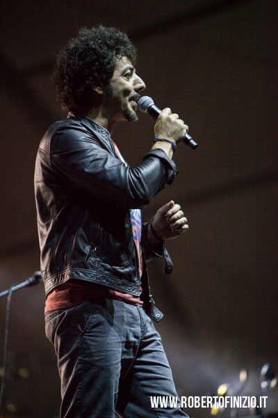 Quasi 20 anni di carriera, 115 canzoni scritte, prodotte e cantate, 11 album all’attivo (di cui 6 registrati in studio, 1 live, 2 raccolte e l’ultimo EP), questi i numeri sulla carta del poliedrico Daniele Silvestri. Ben altri e incontabili invece, i numeri con cui ci delizia sul palco, riuscendo ogni sera a portare in scena uno spettacolo diverso, unico e irripetibile, vuoi perché il pubblico cambia, e con lui feeling ed empatia che si va creando, vuoi perché anche sul palco si alternano -oltre alla“band” di musicisti storici- anche artisti del calibro di Rodrigo D’Erasmo (Afterhours), Guglielmo Gagliano (già con Negrita e Paolo Benvegnù) e Massimo Giangrande.
