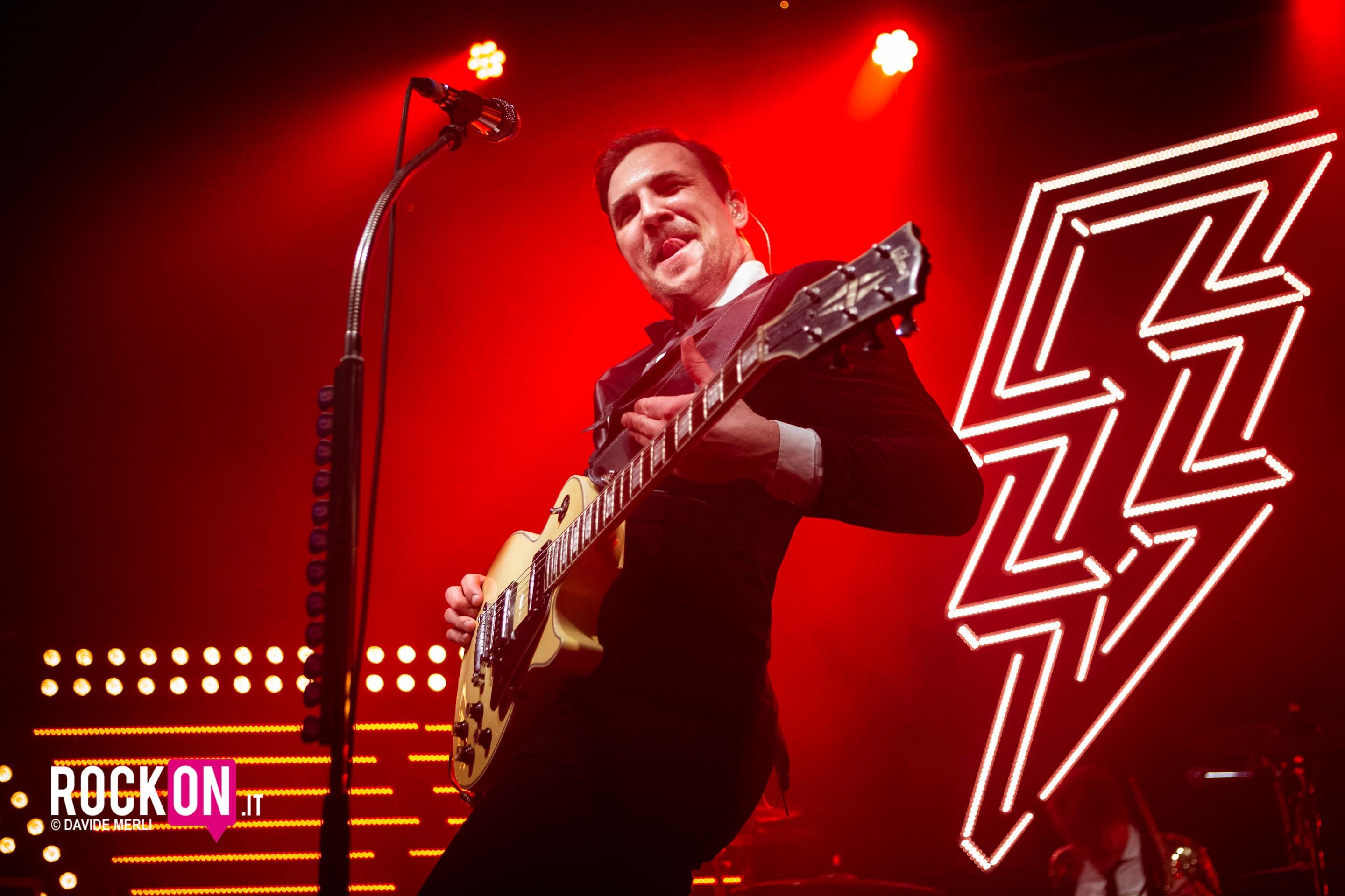 Al grido di 80s-inspired extravaganza la band con il frontman più insolente di tutto il Nord Europa si lancia in uno show adrenalico e folle, muscolare e fisico nel senso stretto, con l’ausilio di una chitarra infiammata e urticante che spara suoni garage punk marcissimi e ruvidi, con sintetizzatori sparati a mille e con vagonate di overdrive e riff che danno dipendenza. Già dall’opener Fireman & Dancer ho capito che questi fanno sul serio e inizio a rimangiarmi quello che avevo detto solo 20 minuti prima a due fan davanti al locale “Non mi sembra che abbiano questa grande personalità”…